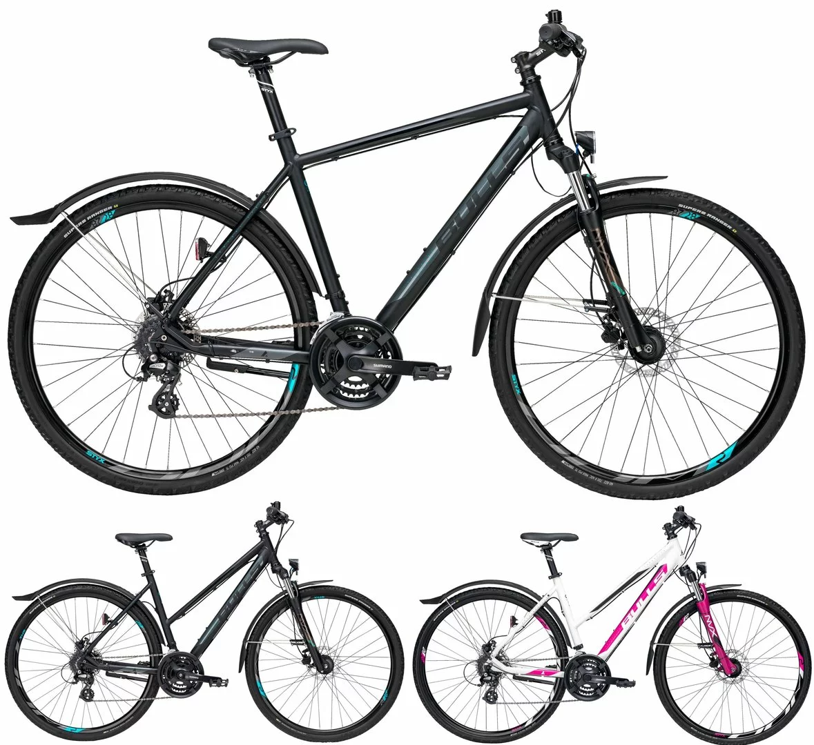 „Das CROSSBIKE STREET ist mehr als ein schnelles Sportrad. Ausgestattet mit Schutzblechen und Lichtanlage verbindet es Geländekompetenz und Alltagstauglichkeit zu einem sportlichen Allrounder für alle Fälle. 24 Gänge für ordentlich Speed und Kletterpower, hydraulische Scheibenbremsen für bestmögliche Kontrolle und kernige Supero Ranger Profilreifen für die nötige Bodenhaftung auf Asphalt, Schotter, Feld- und Waldwegen sorgen für Flexibilität und Vielseitigkeit. So öffnen sich für Alltag und Freizeit neue Perspektiven.“