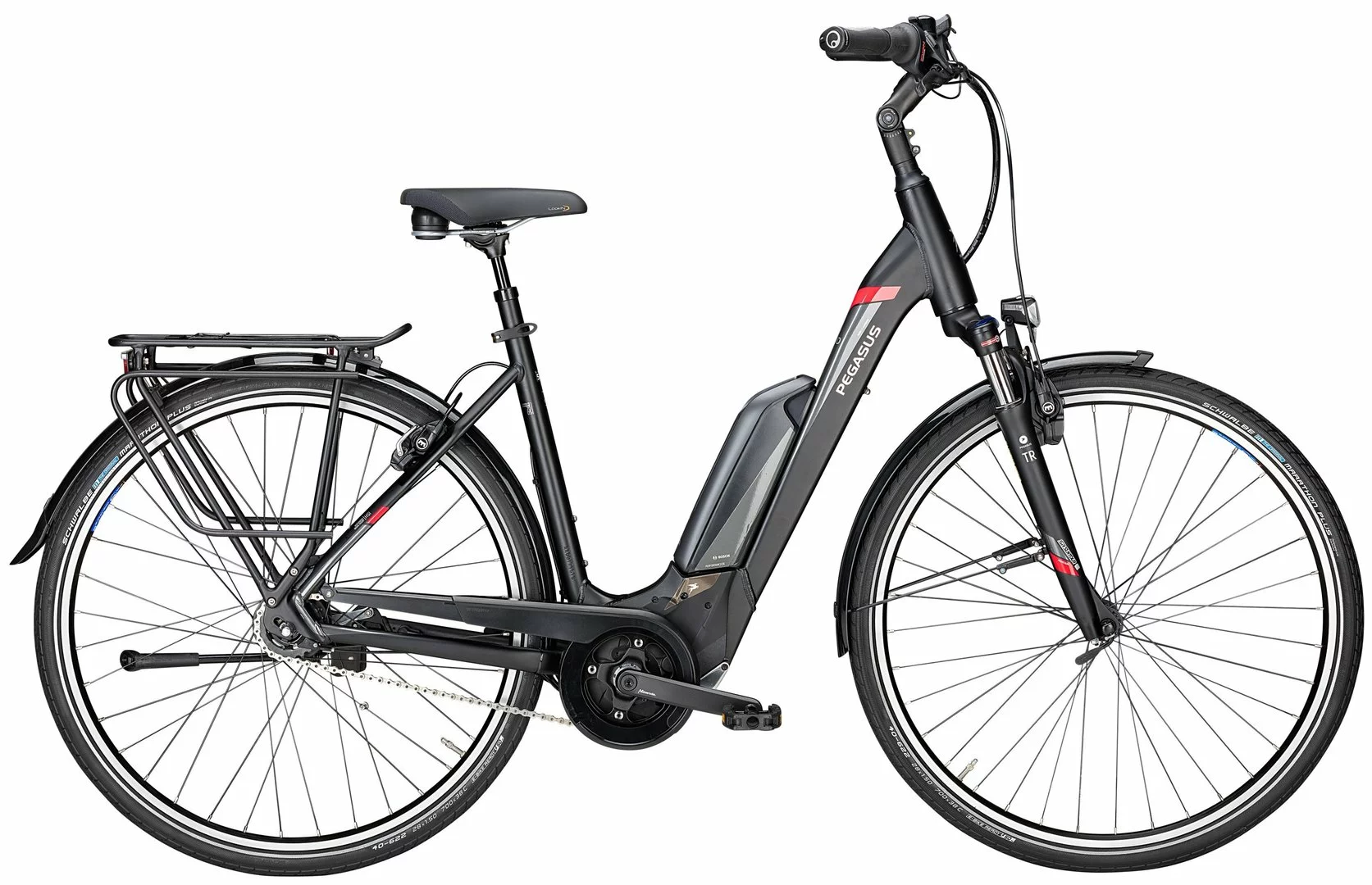 Hydroforming Alu-Rahmen mit Tapered Steuerrohr, Suntour TR-HSI-HLO Federgabel, Nexus 8-Gang Nabenschaltung mit Freilauf und Drehgriff, Magura HSi-22 Bremsen, ZAC19 Hohlkammerfelgen, verstellbarer Lenkervorbau, Bosch Active Plus Line Mittelmotor, 400Wh oder 500Wh (Aufpreis) Akku, Schwalbe Marathon Plus Reifen, gefederte Sattelstütze, 70 Lux LED-Lampe, I-Rack Gepäckträger