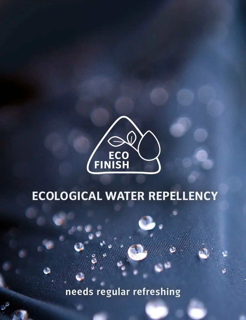 Diese wasser- und schmutzabweisende Ausrüstung wird auf den Oberstoff deines Produktes aufgebracht. Dadurch perlen Regentropfen ab – und das ohne den Einsatz von umweltschädlichen Fluorcarbonen (PFC). Das schützt dich vor Regen und hält die Natur sauber. Für eine dauerhafte Wasser- und Schmutzabweisung ist eine regelmässige Nachbehandlung nötig.